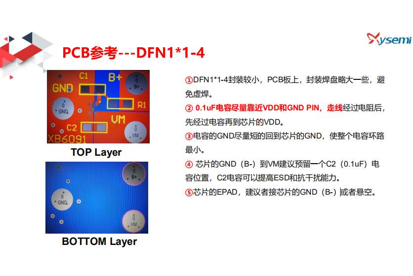 ①DFN1*1-4封裝較小,PCB板上,封裝焊盤略大一些,避免虛焊。